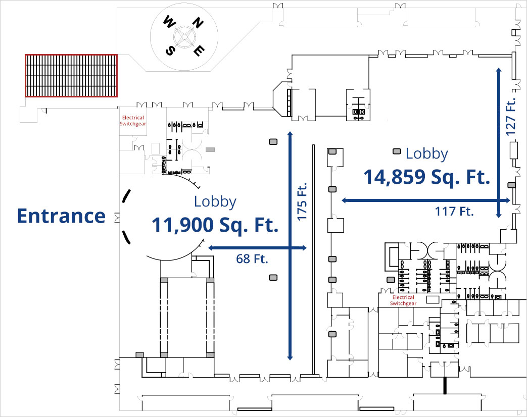 The Terminal lobby is 32,113 square feet divided into 4 main sections featuring the Entry Foyer, Ticketing Area, Passenger Waiting Area, and VIP Lounge.